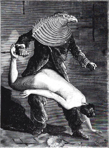 whole, naturalistic birds and imaginary bird-human hybrids form