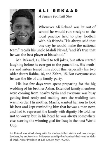 accounting for civilian deaths throughout Iraq. As the “portraits”