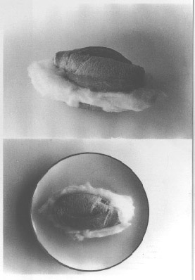 Expanding the notion that the readymades effect is dependent on the referent, Duchamp positions its reception in terms of the signifier/signified: "Its not the visual problem of the readymade which counts: its the fact that it even exists. It can exist in your memory."10 An interesting dialectical fissure in the Duchampian readymade is between the linguistic undercurrent operating in it, and its institutional critique that was largely contingent on the ideological exposure of aesthetics. Thus in that historical moment, the readymades "antiaesthetic" foregrounded a theoretical emphasis on the readymades vacillation between two contextual registers. In the shift between artwork and utilitarian object and/or museum and wine cellar, for example, the Bottle Rack subverts the traditional aesthetic function of art resulting in the "idea of [its] contemplation [to] disappear completely."11 This Duchampian premise is also underscored by Meireles, but he equally underlines the readymades formal qualities as well. The genesis of this interplay between form and context, which Meireles will explore in Money Tree and rework in the Insertions into Ideological Circuits series, is already underway if not implicit in A Very White Sandwich. Implicit is the "formal-sociological" register manifesting in the quotidian association of French bread as staple of flavelas that underscores its participation in a broader social dynamic. While this formal/contextual reconfiguration of the readymade is strictly an innovation by Meireles, Meireles may have been influenced by fellow Brazilian artist Helio Oiticica. Oiticica evidences similar concerns in his reference to the social nature of form as expressed in the Parnagole: "I did not want objective apprehension to be taken from the materials out of which the [Parangole] is constituted: e.g., pieces of plastic, cloths, belts, screens, ropes, etc., or from the connection with objects which the works resemble: e.g., tents, banners, etc. in the architecture of the [flavela,] there is implicitly a Parangole character." 12Similar to the "formal-sociological" meshing of the favela and the Parangole, the vernacular qualities of A Very White Sandwich can never be erased even after its displacement or "change in destination." What was Meireles conveying in a work that is a paradox of the readymade? Particularly in that it was prefabricated not by machine but by the individual hand of the baker, making it simultaneously a unique object and a "multiple." And what of its problematization of the readymade via its poetic conflation of the artist as producer with the laborer/baker as artist? While other artists have worked with food such as Allan Kaprow, for example, Meireles use of food is perhaps closer to Marcel Broodthaers Le problem noir en Belgique (1963)(Fig. 4).