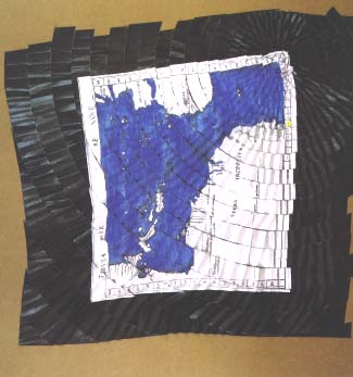 In my previous series of work based on Latin American maps made by colonizers, I appropriated the role of the cartographer by emulating the rational logic of map-making. The intention was to reconfigure the space of the map and convert it into a dysfunctional model of displacements and contingencies, thus creating a hybrid aesthetic condition. This metaphor of appropriation of the oppressors instruments converted into aesthetic material is based on the logic of the instruction of a model and its alteration.
