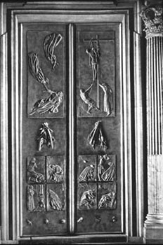 , Giacomo Manzù, 1963, leftmost of five doors of the façade of St. Peter's Cathedral, Vatican.