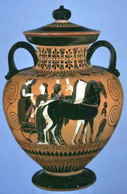 Black-Figured Neck Amphora with Lid: On Each Side Wedding