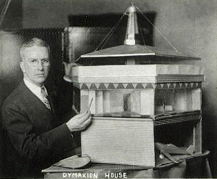 Buckminster Fuller with first model of the Dymaxion House, no date, approx.