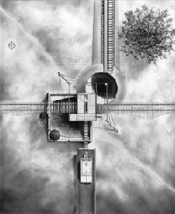 Fig 4: Douglas Darden; Oxygen House, plan at ground level, 1988; pencil, graphite, white crayon, ink on Strathmore paper, 28x34 inches. Digital Image by Peter Schneider, courtesy the Darden Estate
