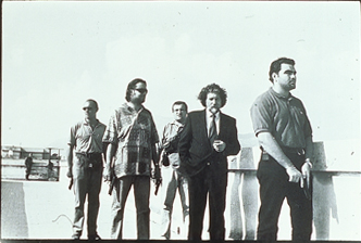 (who was acquitted). Scarpinato stands erect and stares ahead, enveloped
